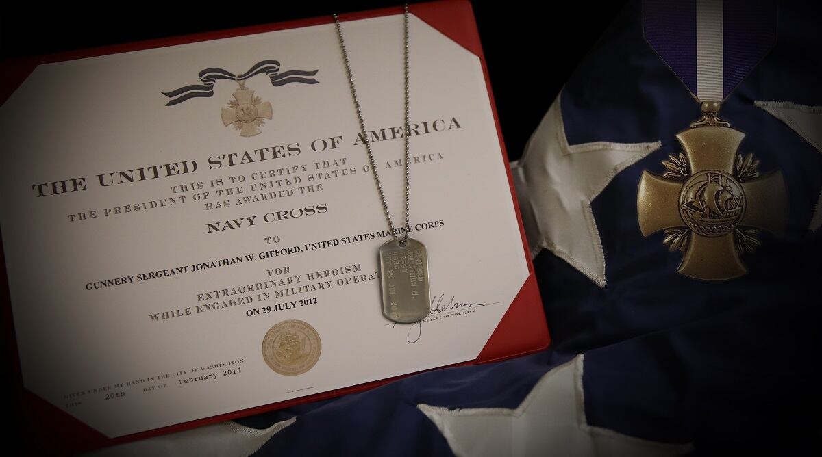Gunnery Sgt. Jonathan Gifford was posthumously awarded the Navy Cross for assaulting across open terrain on an ATV in Afghanistan to rescue wounded Afghan commandos.