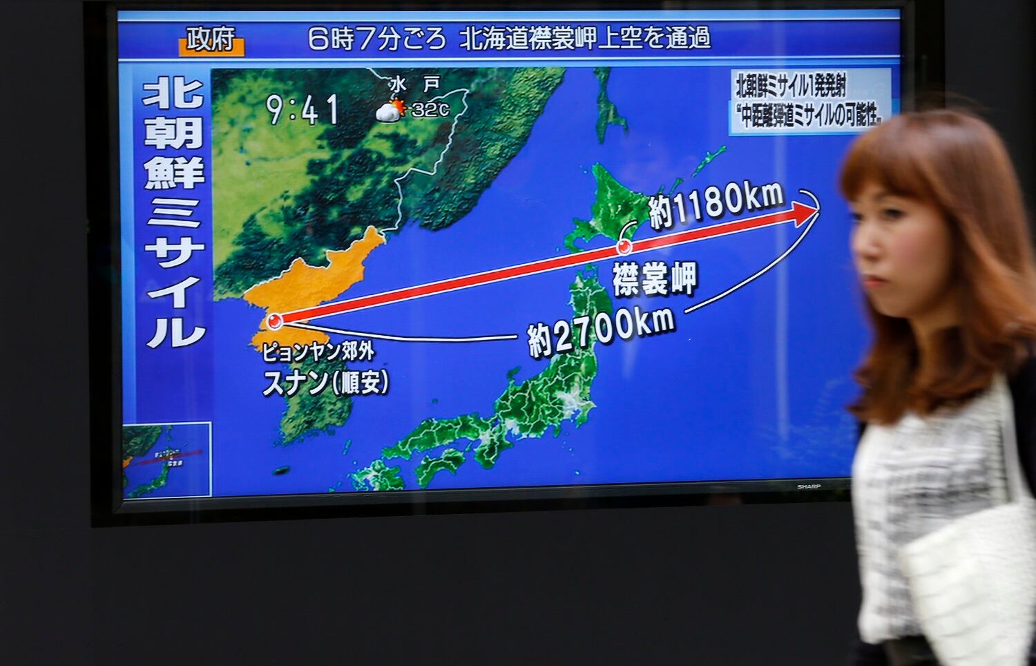 Seoul’s Joint Chiefs of Staff said the missile traveled around 2,700 kilometers (1,677 miles) and reached a maximum height of 550 kilometers (341 miles) as it flew over the northern Japanese island of Hokkaido. The launch, which appears to be the first to cross over Japan since 2009, will rattle a region worried that each new missile test puts the North a step closer toward its goal of an arsenal of nuclear missiles that can reliably target the United States. It appeared to be the North’s longest-ever missile test, but South Korean officials couldn’t immediately confirm.