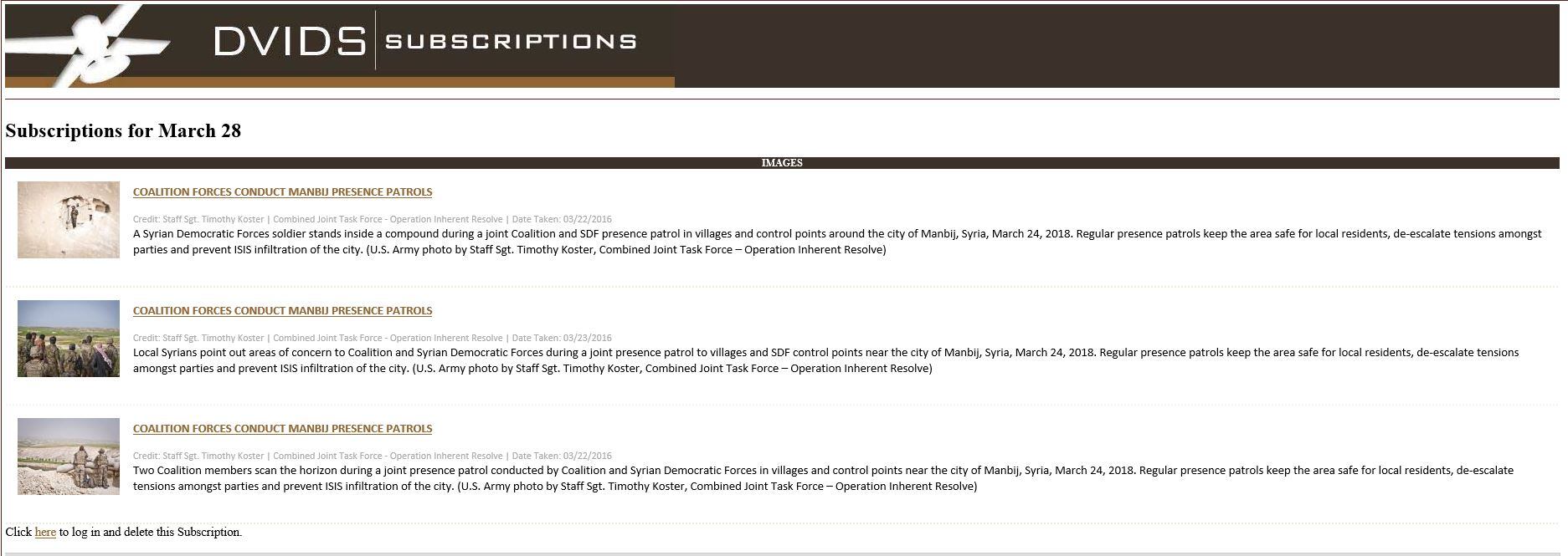 Operation Inherent Resolve recently posted pictures of U.S. soldiers near Manbij, Syria, conducting what the captions called “presence patrols.”