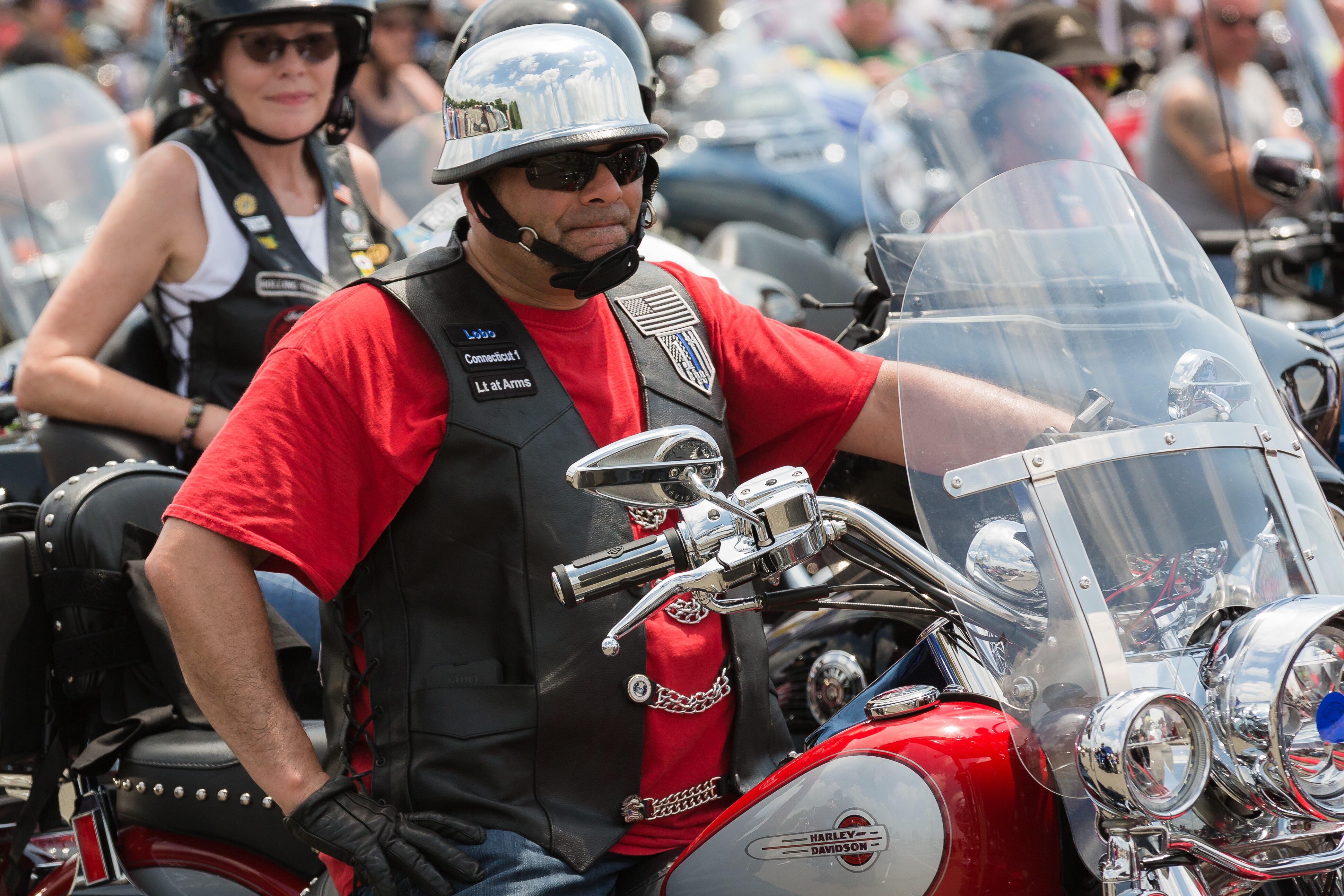 Riders flew flags of many colors in addition to the Stars and Stripes during during Rolling Thunder XXXI First Amendment Demonstration Run in Washington, DC on Sunday May 27, 2018. Motorcycle riders from across the nation, rode a designated route through the Mall area of Washington, D.C. The event is an actual demonstration/protest to bring awareness and accountability for POWs and MIAs left behind.(Alan Lessig/Staff)Air Force veteran Ray Weaver from Lancaster, Penn., gives his traditional salute on Sunday, May 27, to riders in the Rolling Thunder motorcycle procession on Memorial Day in Washington, D.C.(Ben Murray/Military Times)Salute to the riders during Rolling Thunder XXXI First Amendment Demonstration Run after they passed the Lincoln Memorial in Washington, DC on Sunday May 27, 2018. Motorcycle riders from across the nation, rode a designated route through the Mall area of Washington, D.C. The event is an actual demonstration/protest to bring awareness and accountability for POWs and MIAs left behind.(Alan Lessig/Staff)Riders in the Rolling Thunder Memorial Day motorcycle procession ride across the Memorial Bridge, with Arlington National Cemetery in the background as they enter Washington, D.C. on Sunday, May 27, as part of the annual remembrance festivities in the city. (Ben Murray / Military Times)Riders circle around the back of the Lincoln Memorial with the Air Force Memorial in the backgroundduring Rolling Thunder XXXI First Amendment Demonstration Run in Washington, DC on Sunday May 27, 2018. Motorcycle riders from across the nation, rode a designated route through the Mall area of Washington, D.C. The event is an actual demonstration/protest to bring awareness and accountability for POWs and MIAs left behind.(Alan Lessig/Staff)An onlooker looks at wreaths in the Korean War Memorial on Sunday, May 27 in Washington, D.C. during Memorial Day Weekend festivities throughout the city. (Ben Murray / Military Times)Navy veterans and brothers Mark, left, and John Brancaccio, right, salute riders as they pass them along Constitution Ave during Rolling Thunder XXXI First Amendment Demonstration Run in Washington, DC on Sunday May 27, 2018. Motorcycle riders from across the nation, rode a designated route through the Mall area of Washington, D.C. The event is an actual demonstration/protest to bring awareness and accountability for POWs and MIAs left behind.(Alan Lessig/Staff)Riders in the Rolling Thunder Memorial Day motorcycle procession ride through the capital in Washington, D.C. on Sunday, May 27, as part of the annual remembrance festivities in the city. (Ben Murray / Military Times)Pedestrians walk through the Korean War Memorial on Sunday, May 27 in Washington, D.C. during Memorial Day Weekend festivities throughout the city. (Ben Murray / Military Times)An onlooker looks at wreaths in the Korean War Memorial on Sunday, May 27 in Washington, D.C. during Memorial Day Weekend festivities throughout the city. (Ben Murray / Military Times)Riders in the Rolling Thunder Memorial Day motorcycle procession ride through the capital in Washington, D.C. on Sunday, May 27, as part of the annual remembrance festivities in the city. (Ben Murray / Military Times)Susan McBride, from Maryland, thanks riders for their service during Rolling Thunder XXXI First Amendment Demonstration Run along Constitution Ave. in Washington, DC on Sunday May 27, 2018. Motorcycle riders from across the nation, rode a designated route through the Mall area of Washington, D.C. The event is an actual demonstration/protest to bring awareness and accountability for POWs and MIAs left behind.(Alan Lessig/Staff)Air Force veteran Anna Sanders from Baton Rouge, LA, shows her support to riders during Rolling Thunder XXXI First Amendment Demonstration Run along Constitution Ave. in Washington, DC on Sunday May 27, 2018. Motorcycle riders from across the nation, rode a designated route through the Mall area of Washington, D.C. The event is an actual demonstration/protest to bring awareness and accountability for POWs and MIAs left behind.(Alan Lessig/Staff)A rider slaps hands with some of the supporters who came out to line the route along Constitution Ave. during Rolling Thunder XXXI First Amendment Demonstration Run in Washington, DC on Sunday May 27, 2018. Motorcycle riders from across the nation, rode a designated route through the Mall area of Washington, D.C. The event is an actual demonstration/protest to bring awareness and accountability for POWs and MIAs left behind.(Alan Lessig/Staff)Riders wave to the large crowd during Rolling Thunder XXXI First Amendment Demonstration Run along Constitution Ave. in Washington, DC on Sunday May 27, 2018. Motorcycle riders from across the nation, rode a designated route through the Mall area of Washington, D.C. The event is an actual demonstration/protest to bring awareness and accountability for POWs and MIAs left behind.(Alan Lessig/Staff)Spectators waved to riders during the Rolling Thunder XXXI First Amendment Demonstration Run along Constitution Ave. in Washington, DC on Sunday May 27, 2018. Motorcycle riders from across the nation, rode a designated route through the Mall area of Washington, D.C. The event is an actual demonstration/protest to bring awareness and accountability for POWs and MIAs left behind.(Alan Lessig/Staff)Park Police officers wave to riders as they pass them during Rolling Thunder XXXI First Amendment Demonstration Run along Independence Ave. in Washington, DC on Sunday May 27, 2018. Motorcycle riders from across the nation, rode a designated route through the Mall area of Washington, D.C. The event is an actual demonstration/protest to bring awareness and accountability for POWs and MIAs left behind.(Alan Lessig/Staff)Retired Master Gunnery Sgt. Johnny Herrmann welcomes fellow riders to Rolling Thunder.