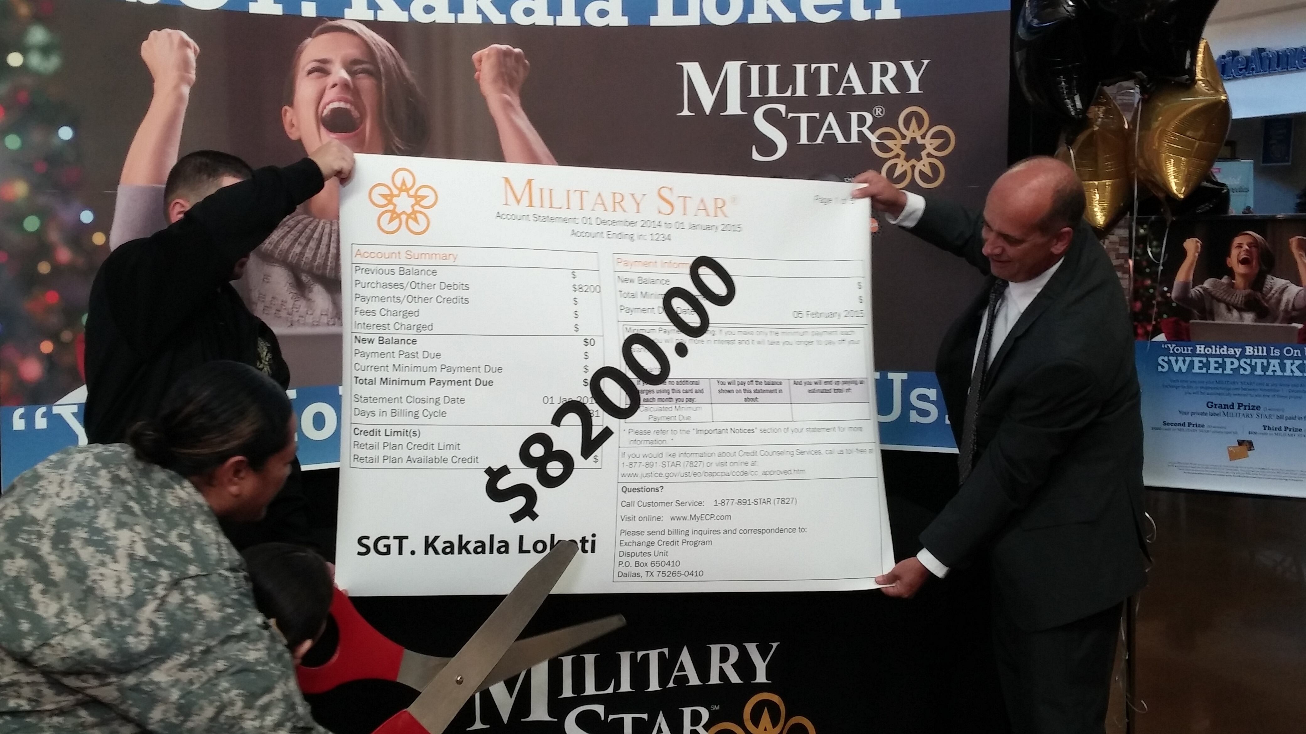 One of the very first prize winners was Kakala Loketi, an Army sergeant at Fort Bliss with a husband and young son. In using her MILITARY STAR card to help fellow Soldiers through rough patches, as well as for a family emergency of her own, Loteki had reached her MILITARY STAR card limit. When MILITARY STAR paid her bill and wiped clean her balance, "It changed my life," she said. Sgt. Loteki is just one example of the Exchange's extraordinary customers. It is our honor to serve her and others just like her.