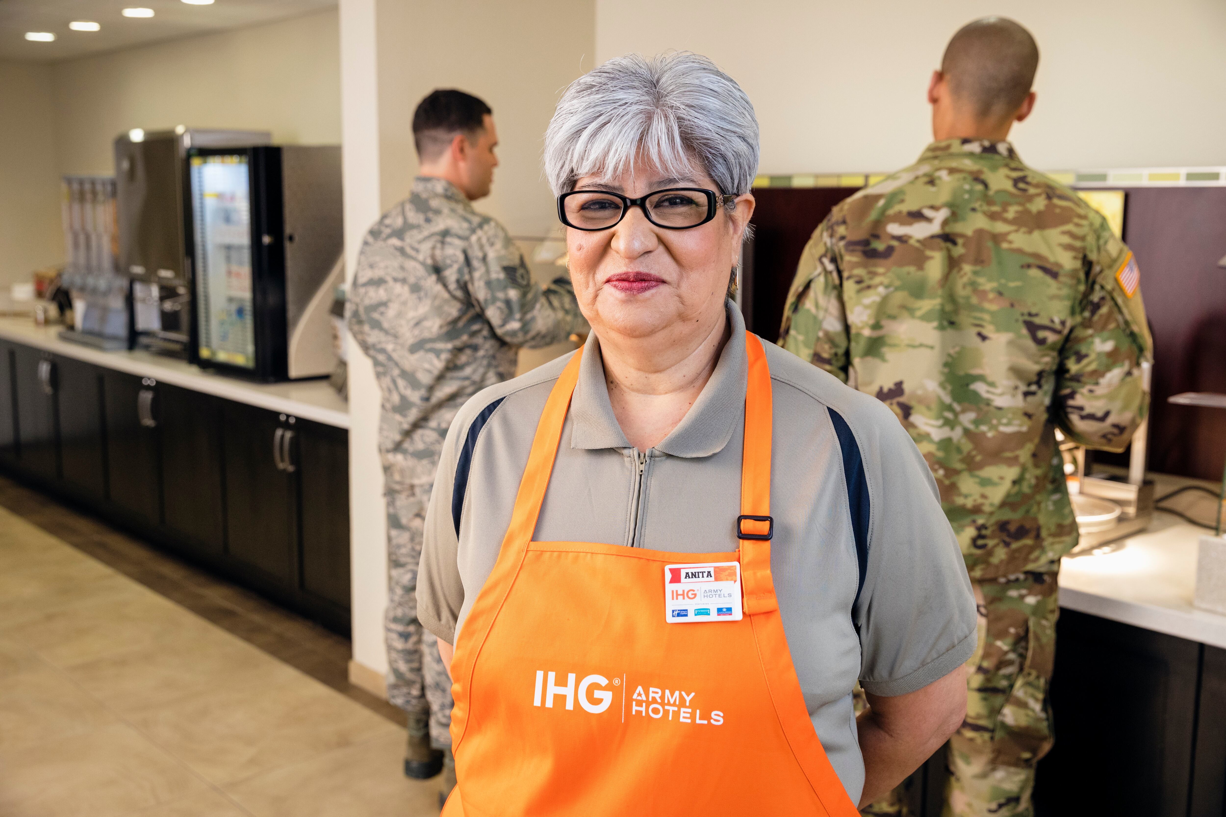 Having these former soldiers and military family members who understand the unique needs of their guests has a real impact, and it makes sense. The transition from service to one’s country to service to others is a natural progression for many military members and their families and finding that passion can turn a job into a career. Just ask Trudy Rudolf, military spouse and Executive Housekeeper. “It’s not just a job for me. You can move up, and you can go higher with IHG®.”