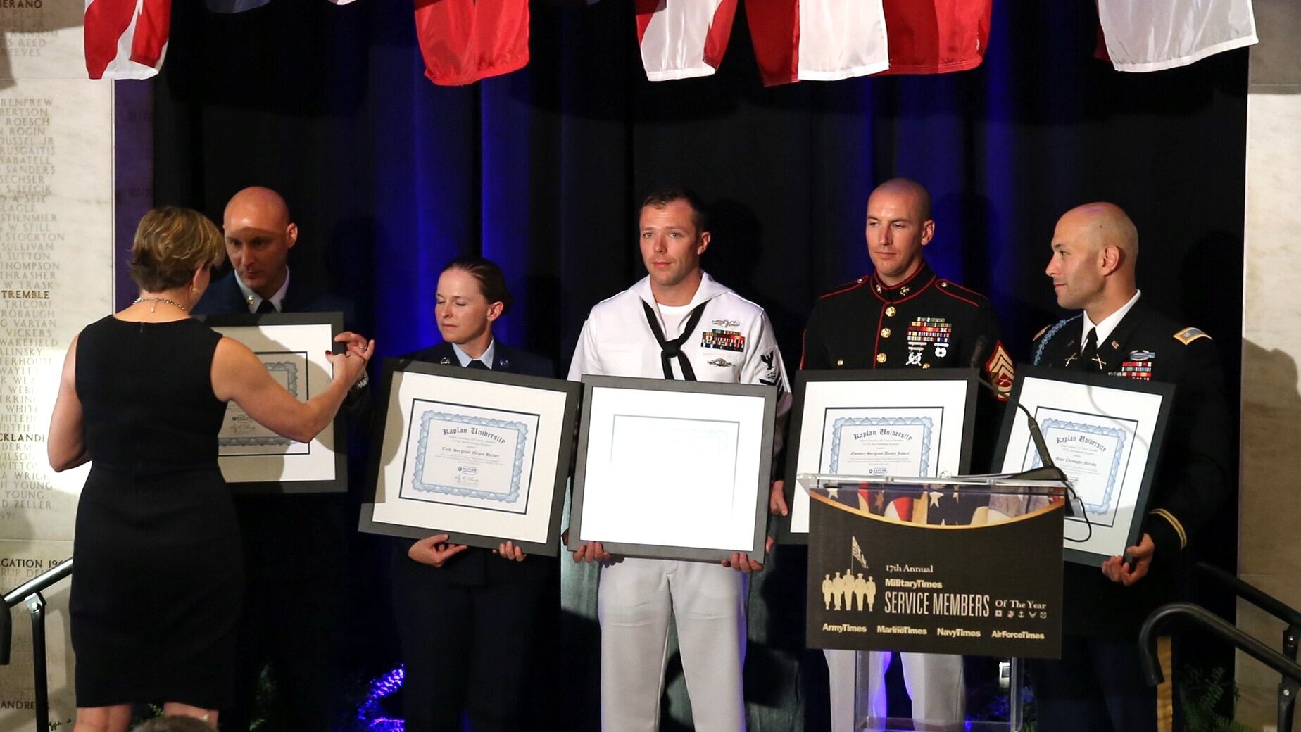 The 2017 Service Members of the Year receive full scholarships to Kaplan University, the education sponsor of the Military Times 2017 Service Member of the Year award. July 12, 2017.