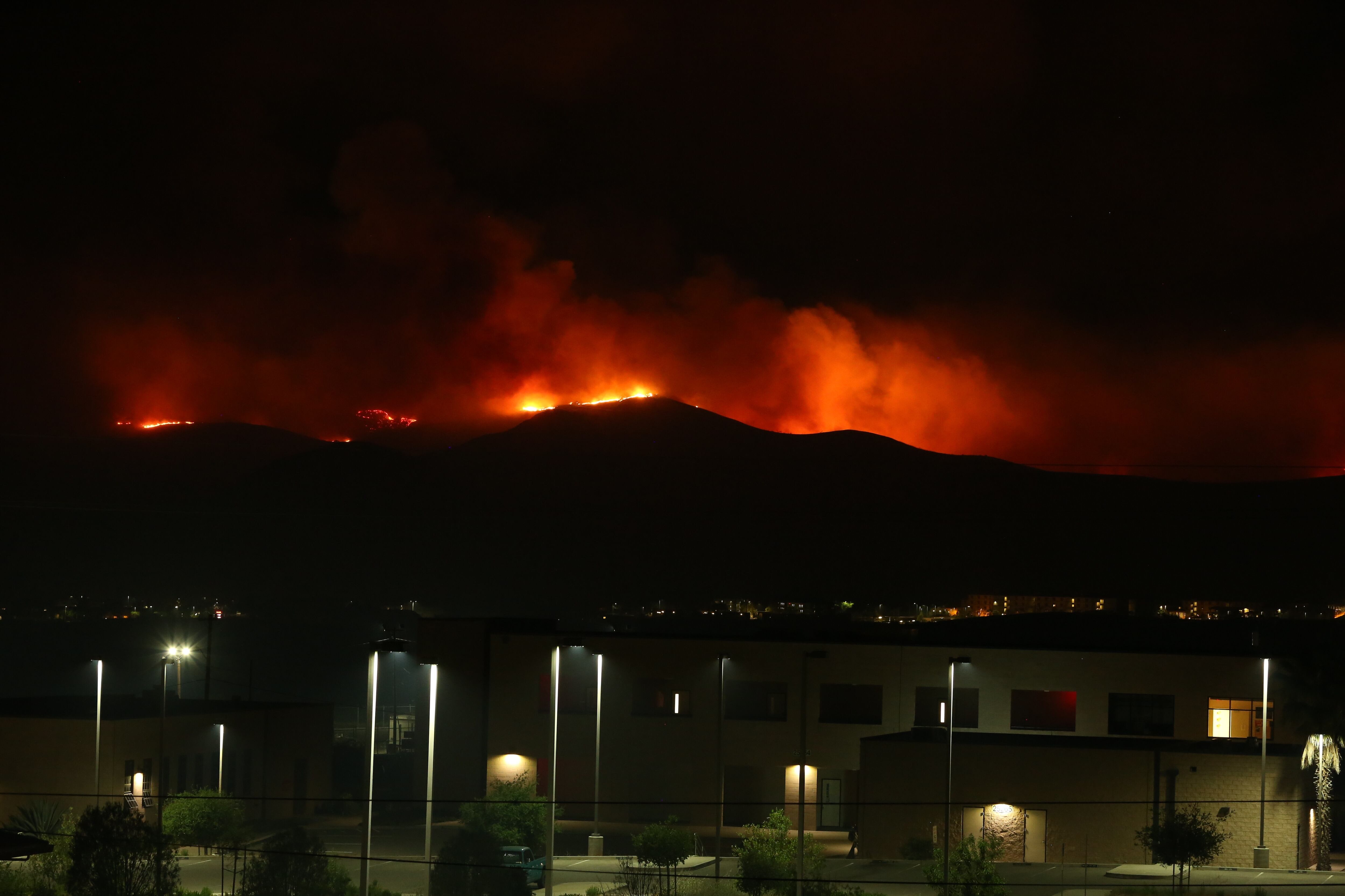 U.S. Marines and fire crew on Marine Corps Base Camp Pendleton, Calif., respond to wildfires ablaze in southern California May 14, 2014. The Tomahawk fire, in the northeast section of Camp Pendleton has burned more than 6,000 acres forcing evacuations of housing areas on base and various schools both on and off base. (Photo credit: Lance Cpl. Anna Albrecht)
