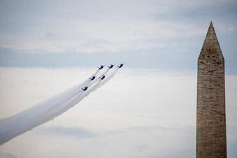 They will then join the larger air show in the nation's capital, which will begin at about 6:30 p.m. with a demonstration by the U.S. Army Golden Knights Parachute Team and a 21-gun salute by the military's 3rd Infantry Regiment, known as The Old Guard.