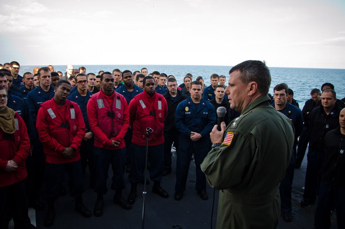 A. My No. 1 priority from my very first command has always been safety. Injury and death are a necessary and evil part of combat, but they have no place in preparation for combat or how we live our daily lives. Having been in this business 37 years, and this being my sixth command, the only "get out day" is when I lose a sailor for any reason. It's just crushing. We got that particular call 58 times since I've been here. Only eight were on duty. Thirty-two were suicides and the rest were off-duty mishaps. Every one of them never should have happened.
