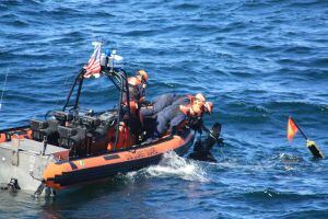 Crew members on a cutter freed the sea turtle after it became entangled in fishing line about 15 miles off the coast of Cape Elizabeth on Sunday.