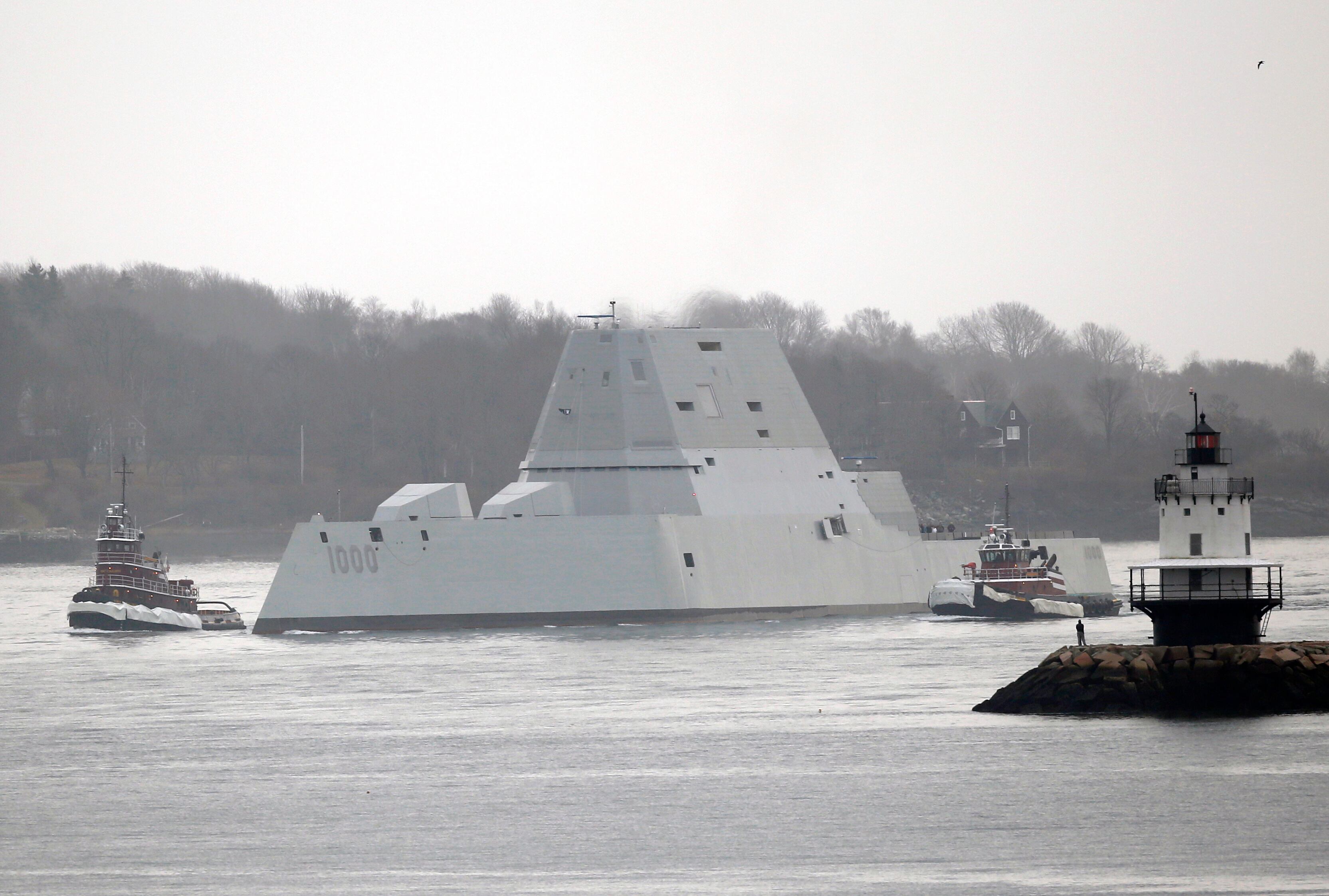 The Zumwalt left Bath Iron Works for sea trials on Monday.