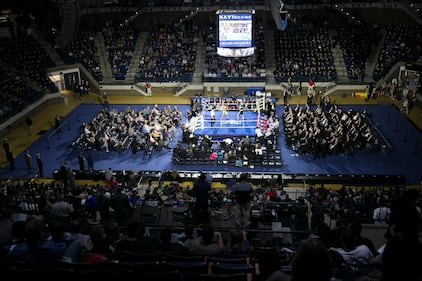 Midshipmen at the Naval Academy slug it out in the 77th Annual Brigade Boxing Championships.