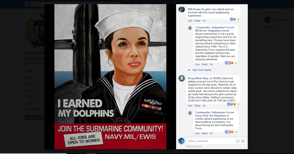 But last week on Facebook, a Navy command clapped back at commenters bemoaning increased opportunities for women on submarines.