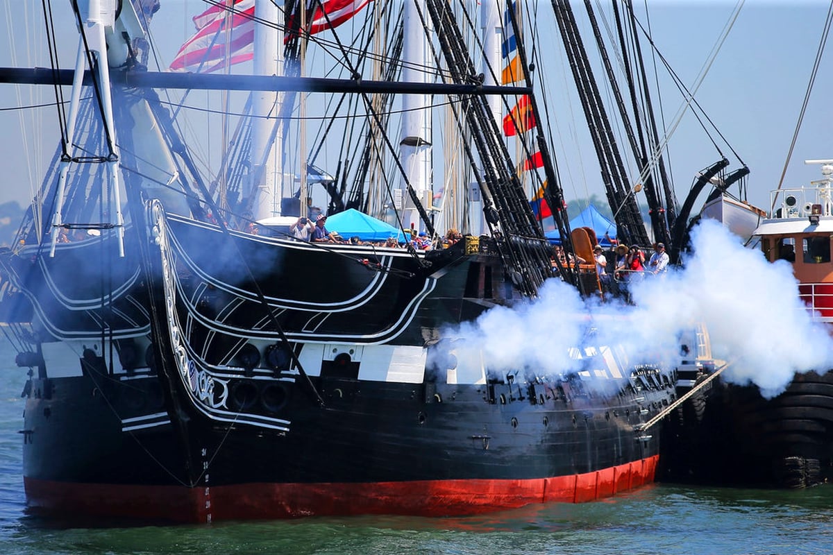 The ship nicknamed “Old Ironsides” traveled to Fort Independence on Castle Island to fire a 21-gun salute. The ship’s commander saluted the crowds gathered there.