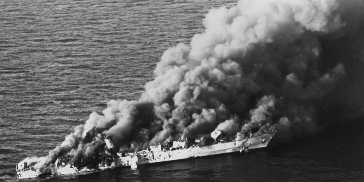 A blaze swept the deck of the Sahand, eventually reaching the ship’s magazines, which detonated.