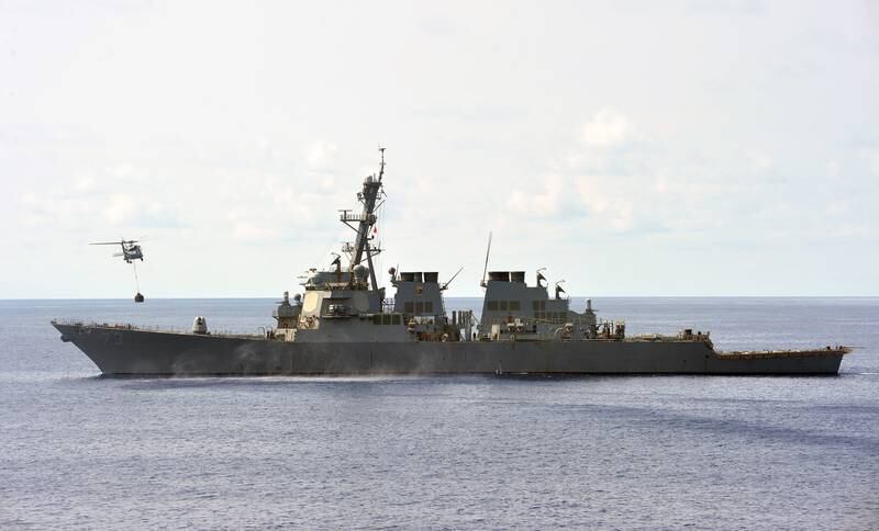 Two U.S. destroyers steamed near islands in the increasingly contested South China Sea Monday as part of a continuing effort to counter Beijing’s claim over those waters, officials confirmed.