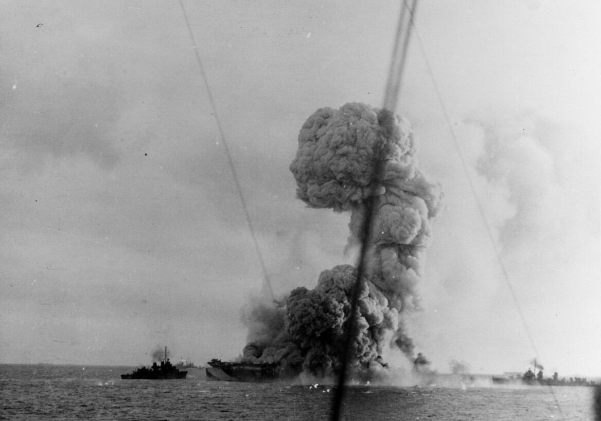 The incoming aircraft, which no sailors spotted until it was too late, slammed into the Casablanca-class escort carrier’s starboard side, erupting its two attached bombs and igniting a conflagration on the ship’s flight deck, where a slew of aircraft that had not yet been degassed were assembled.