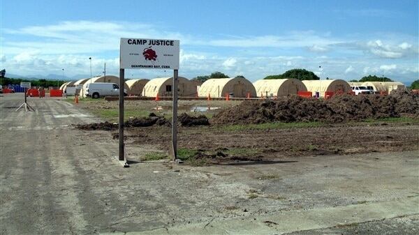Camp Justice is a compound of temporary and permanent structures at a former airfield on the base that includes two courtrooms for use in legal proceedings against prisoners facing trial by military commission, including five men charged with planning and assisting the Sept. 11, 2001, terrorist attack.