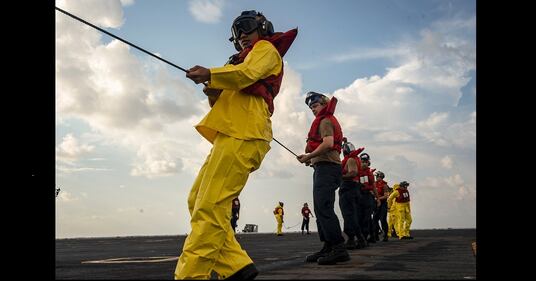 Sailors heave a line aboard the aircraft carrier George H.W. Bush during a replenishment in the Atlantic Ocean Sept. 9. (Navy)